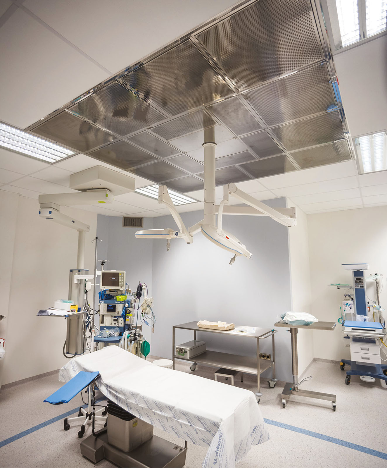 Łazarski Hospital is a new health care facility built in less than 12 months. The fully modern and technologically advanced facility meets all EU standards and the standards of the Minister of Health, legal regulations and good medical practices. Łazarski Hospital has been equipped with 14 Klimor hygienic MCKH units with high-performance glycol exchangers and cross-flow exchanger, with different supply and exhaust air volumes. The devices were made in accordance with the requirements of the regulations on the so-called clean rooms. There are also 3 ceiling diffusers with NSL laminar outlet with the flow rate of 4,500 m3/h each.