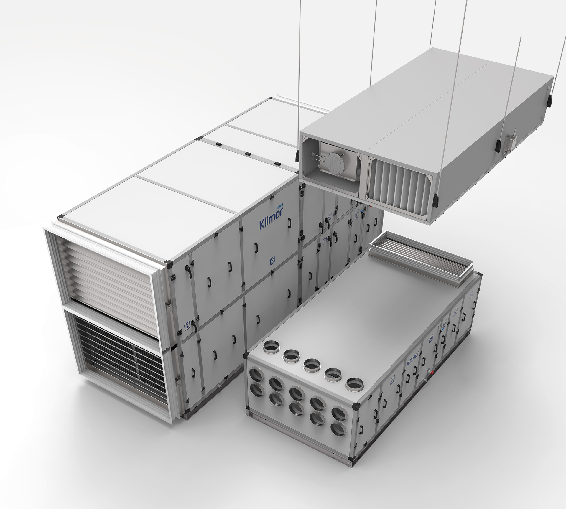 Klimor ofrece equipos en varias docenas de tamaños, varios diseños, diferentes tipos de cimentación, construcciones variadas y una amplia gama de equipamiento en forma de bloques funcionales. Como fabricante de centrales de ventilación, también aspira a la excelencia en el ámbito de los equipos que ofrece y las tecnologías innovadoras que llevan años marcando los estándares del sector.