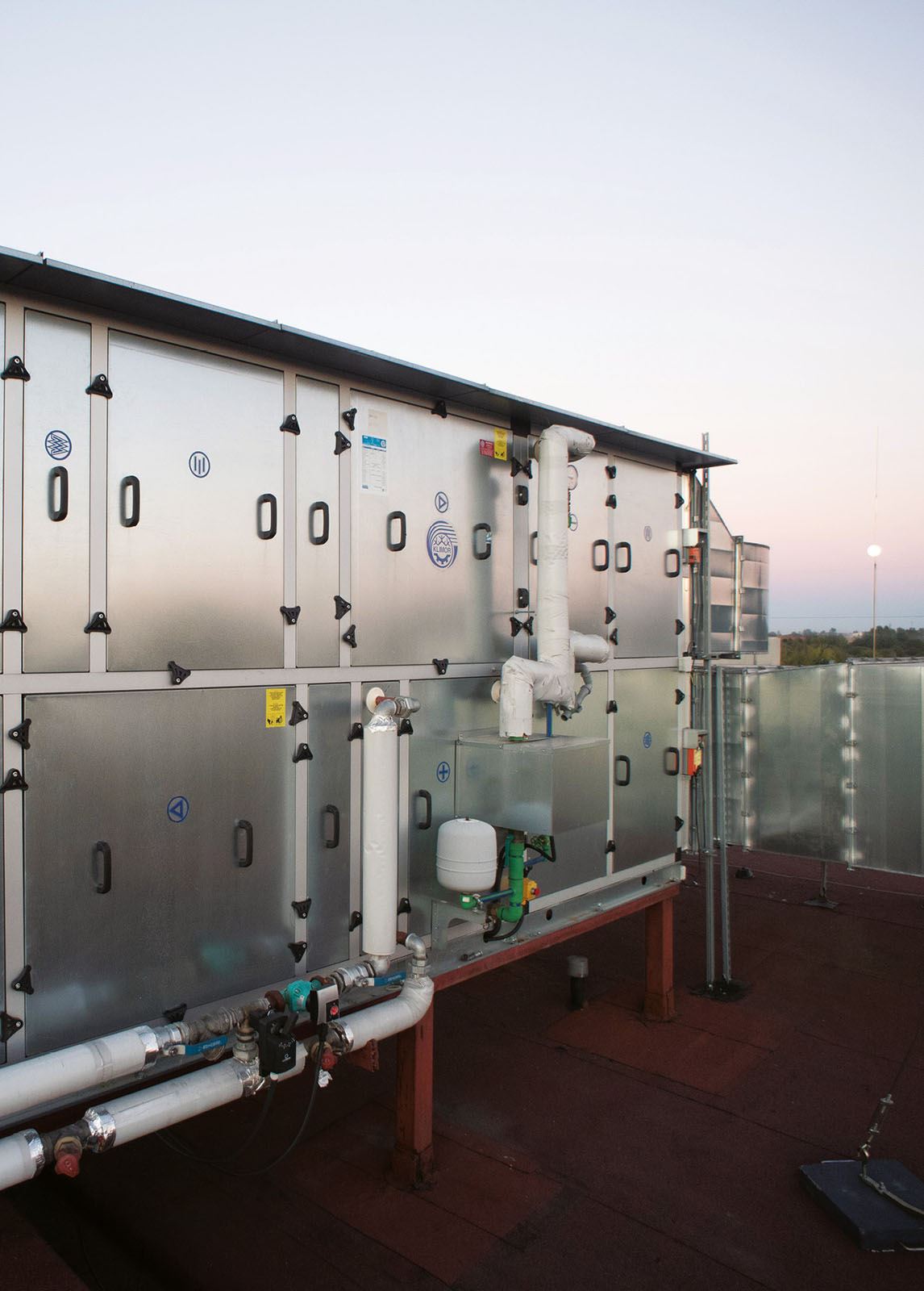 Ambos edificios han sido equipados con modernos sistemas de refrigeración de la marca Klimor, que incluyen centrales de ventilación MCKS con intercambiador de calor rotativo y de glicol, con diferentes capacidades de aire de impulsión y extracción.