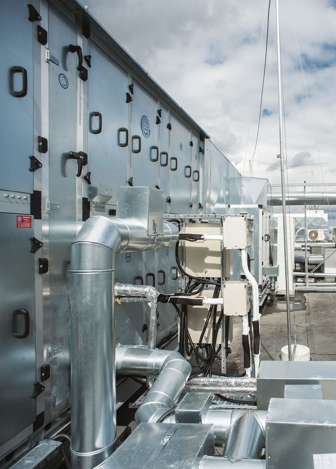 La inversión, que se lleva a cabo por etapas, se basa en su totalidad en el sistema de climatización suministrado por el Grupo Klima-Therm. El complejo está equipado con unidades de ventilación de la marca Klimor en versión estándar MCKS y MCKT suspendidas con diferentes capacidades de aire de impulsión y extracción. La instalación también cuenta con unidades condensadoras Fujitsu VRF V-III con el kit de conexión DX-KIT, 3 unidades de agua fría Klima-Therm by Clint refrigeradas por aire con opción de refrigeración gratuita, fan coils de la marca Klima-Therm by Sabiana y aires acondicionados Fujitsu tipo Split destinados a la sala de servidores.
