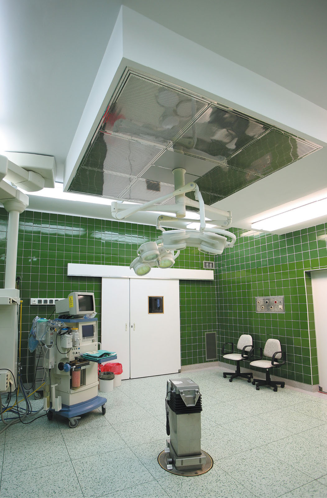 A finales de 2010, el hospital equipó tres quirófanos con armarios de climatización de la marca KLIMOR, tipo SKH, con módulo de recuperación de glicol, bombas de calor y humidificación, con una capacidad de aire de impulsión de 3000 m3/h y de extracción de 2700 m3/h. Los armarios SKH KLIMOR se fabrican de acuerdo con los requisitos establecidos en los reglamentos y directrices de diseño para hospitales y salas blancas, así como con las normas DIN 1946-4 y VDI 6022. En los quirófanos también se han instalado techos laminares NSL KLIMOR con filtros absolutos HEPA con una eficacia de filtración del 99,95 % (H13) y del 99,9 % (H14), que garantizan la limpieza microbiológica adecuada.